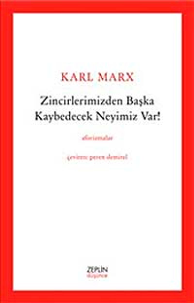 Karl Marx’ın eserlerinden özenle derlenen Zincirlerimizden Başka Kaybedecek Neyimiz Var! siz sevgili okurlarımızı benzersiz bir okuma keyfine davet ediyor.