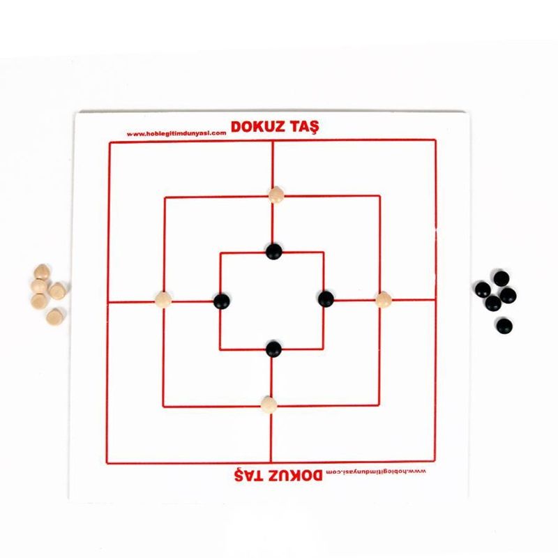 Oyun tahtası üzerinde oluşan 24 kesişim noktasında 9 ar taş ile oynanır.