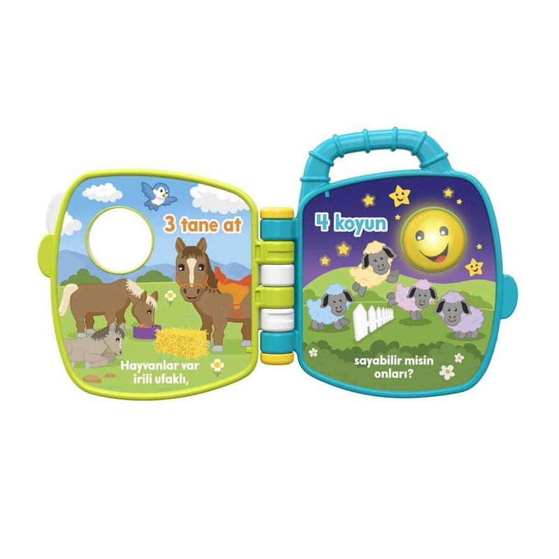 Bu müzikli taşınabilir kitap, bebeğinize sevimli hayvanları, sayı saymayı ve daha birçok eğlenceli faaliyeti