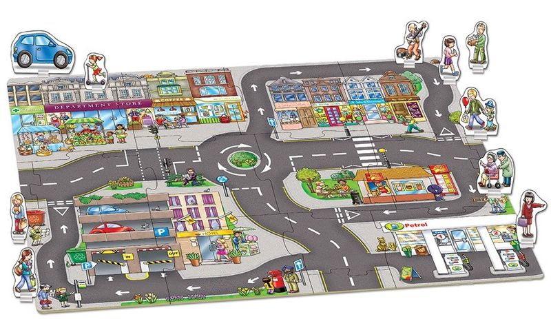 15 dev parçadan oluşan bu yer yapbozu ile çocuklar bir şehir kuracaklar. Kendi oyuncaklarını da katarak kurudukları dünyayı genişletebilirler.