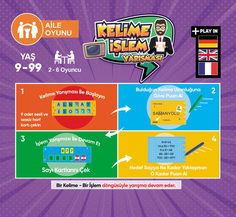 sessiz olmasına karar verebilirler. Ortaya çıkan harflerle rakiplerinden daha uzun bir kelime oluşturarak