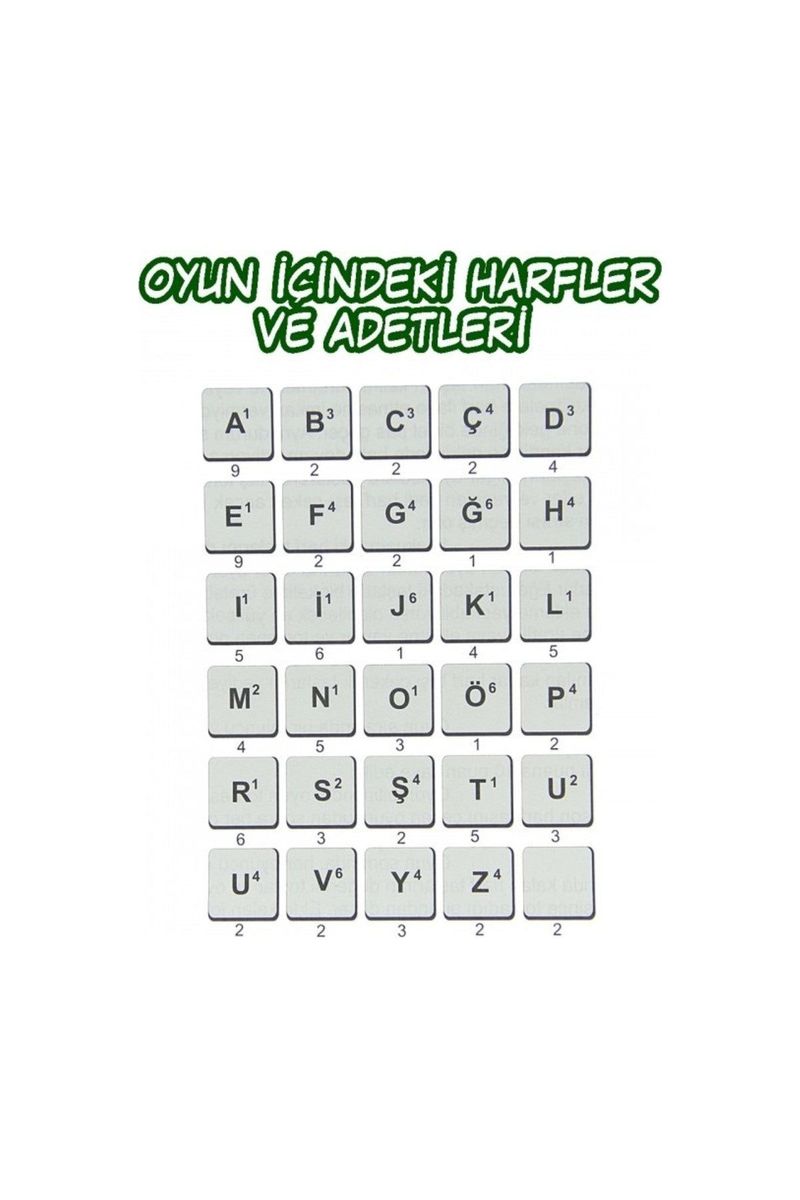 100 Adet Harf1 Adet Harf Taşı Torbası1 Adet Oyun