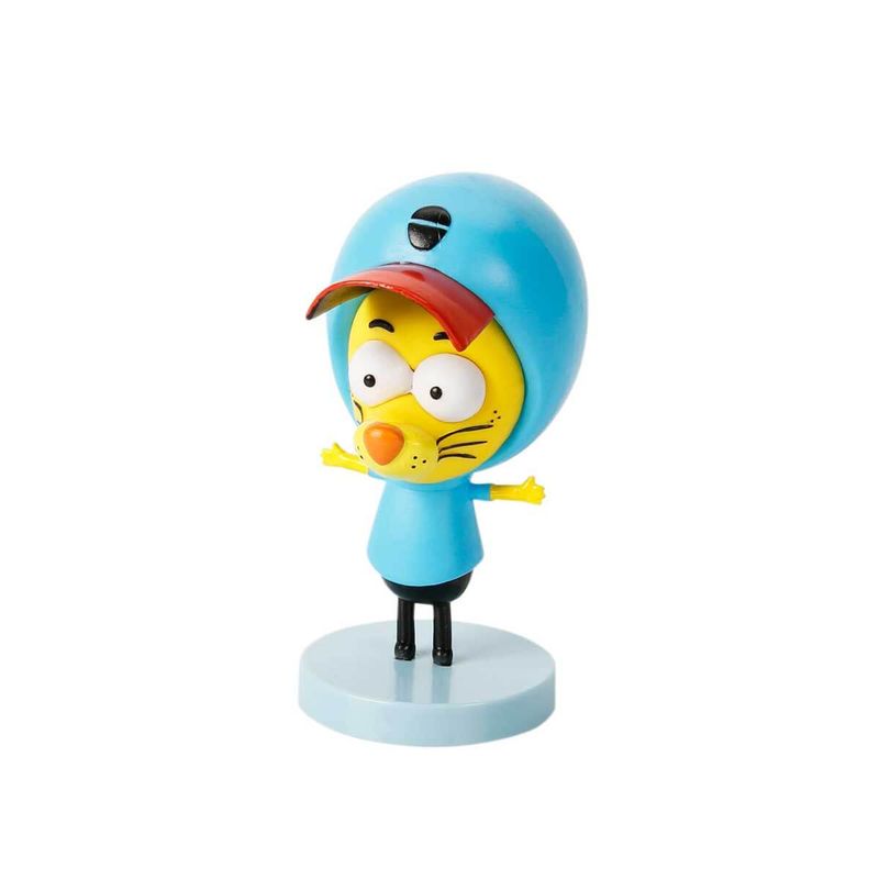 şapka takıp, üzerinde mavi hırkasını giymektedir. Hırkasının kafa kısmında siyah iki yarım daire bulunmaktadır.