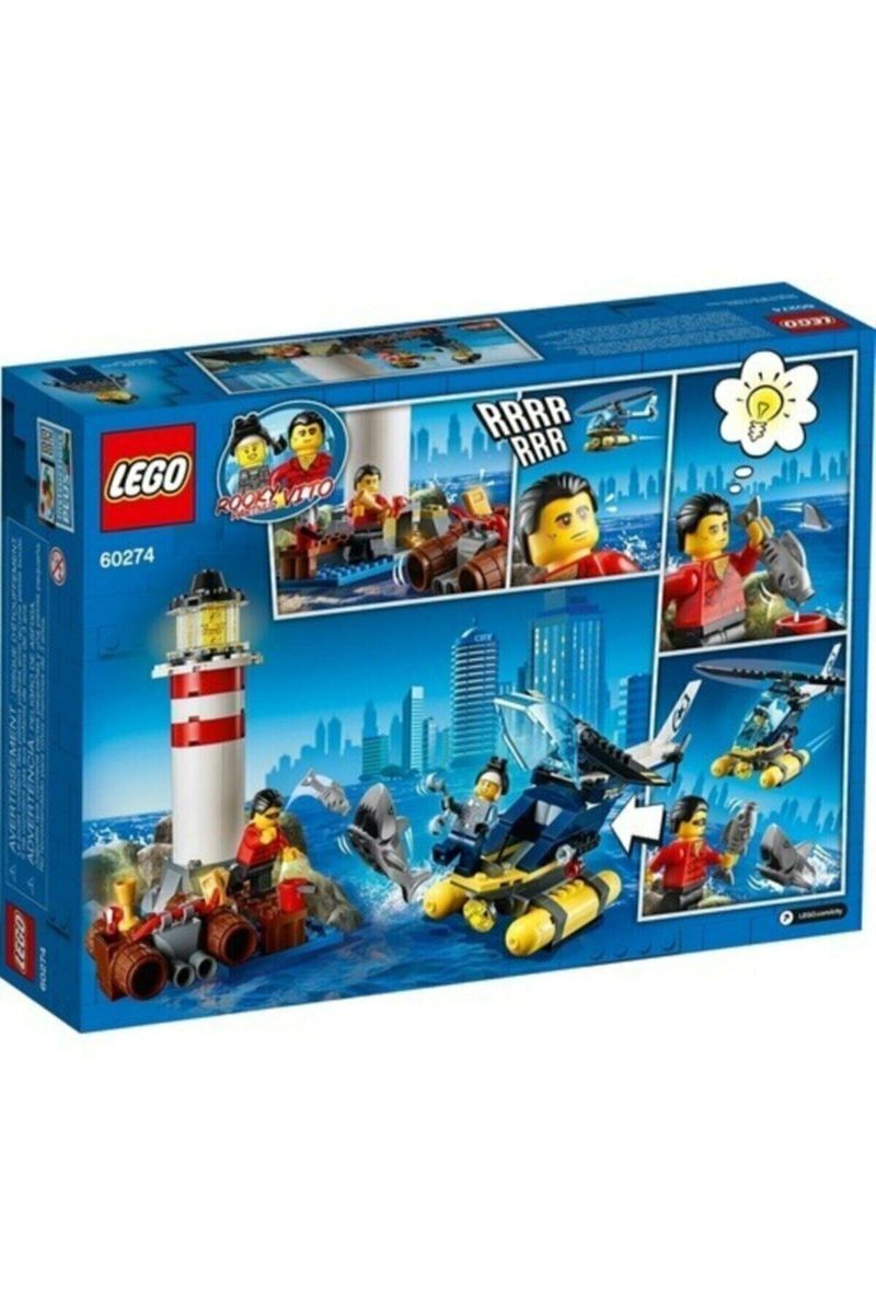 Özelliklerle dolu deniz feneri, oyuncak helikopter ve derme çatma sal, LEGO® City Maceraları çizgi dizi karakterleri Rooky Partnur ve Vito ile ayrıca bir köpek balığı, eğlence ve maceraya sahne hazırlar.