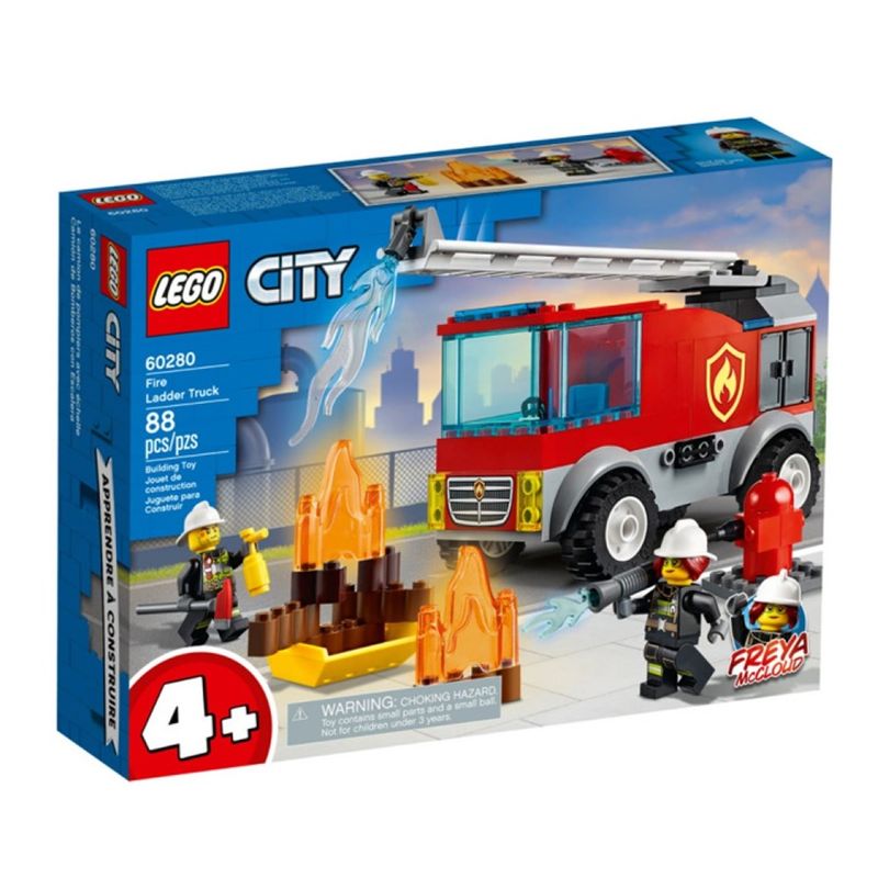 Çocuklar itfaiye merdivenini uzatabilir, itfaiye aletlerini kamyonun saklama bölmesinekoyabilir ve LEGO® City Maceraları çizgi dizisinin itfaiye şefi Freya McCloud ile hikayeler oluşturabilir.