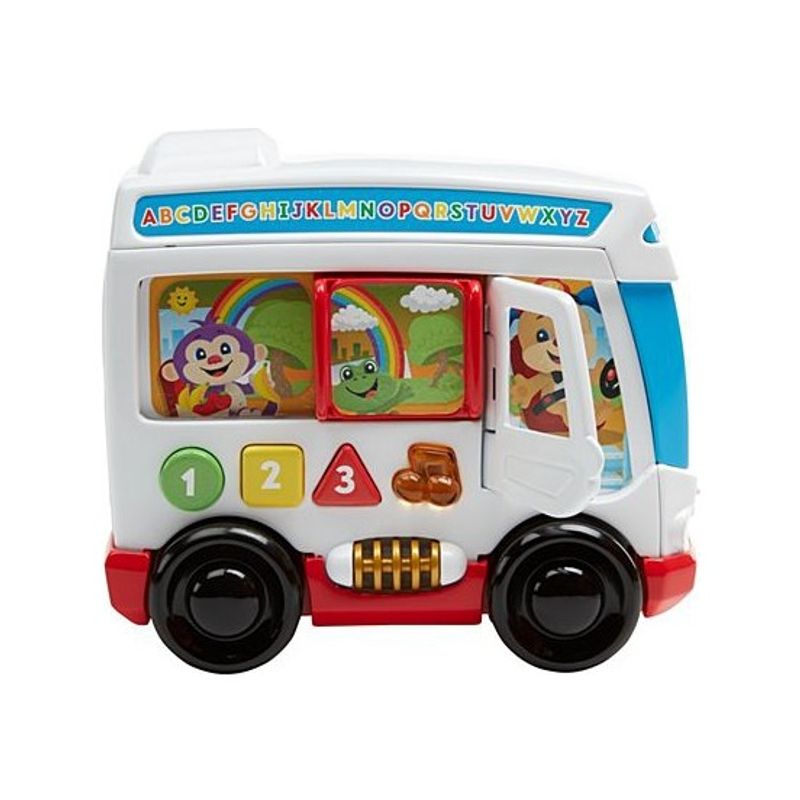 Şekiller: Bebeğiniz üç şekil düğmesine basıp otobüsle birlikte emeklediğinde, ona tanıdık renkleri, şekilleri ve daha fazlasını öğreten eğlenceli şarkılar, sesler ve cümleler duyacak. Zıt anlamlı kelimeler: Bebeğiniz pencereyi ileriye ve geriye doğru kaydırırken ve içerideki arkadaşlarını görmek için kapıyı açıp kaparken; otobüs onu zıt anlamların eğlencesi ile tanıştırır.