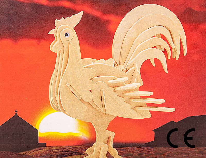 Montessori Ahşap Zeka Oyunları / w-3D Puzzle- Rooster
