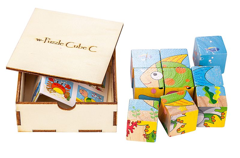 Montessori Ahşap Zeka Oyunları w-Puzzle Cube C Hayvanları Tanıyalım 1