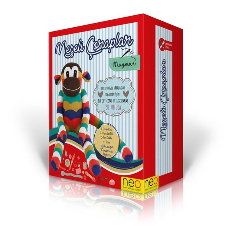 En sevdiğin arkadaşını yaratman için bir çift çorap ve aksesuarları bu kutuda sunuyoruz. Buradaki talimatlarla başlayın ve kendi zevkinize göre süsleyerek devam edin. Ona çok emek vermiş olacaksınız ama bitirdiğinizde sizinle her yere gelmeye hazır bir arkadaşınız olacak.