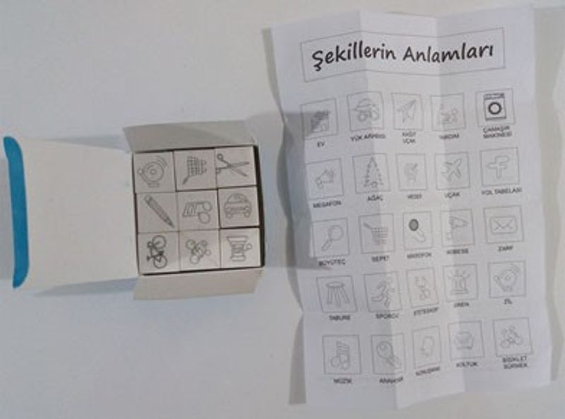 Üzerinde çeşitli şekillerin olduğu 9adet küp