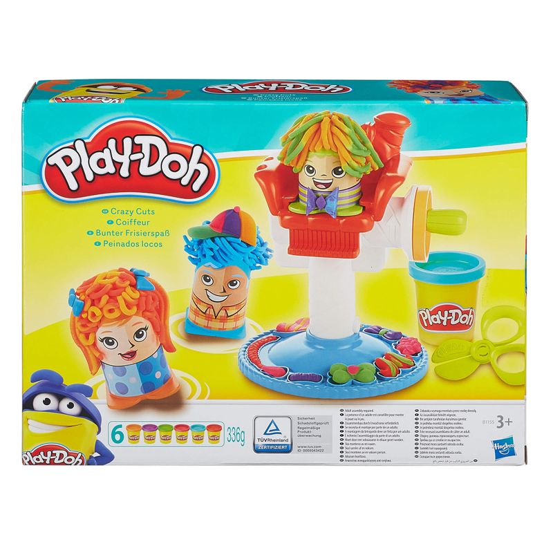 Bu berber salonunda yaratıcılık konuşuyor! Çocuklar, 6 renk Play-Doh oyun hamuru ve eğlenceli aksesuarlarla kutuya dahil 3 karakter için en renkli, en çılgın saç modellerini tasarlayabilecek.