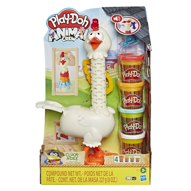 Çocuklar; uzayan Play-Doh tüyler, Play-Doh yumurtalar ve eğlenceli tavuk sesleri gibi çok sayıda eğlence