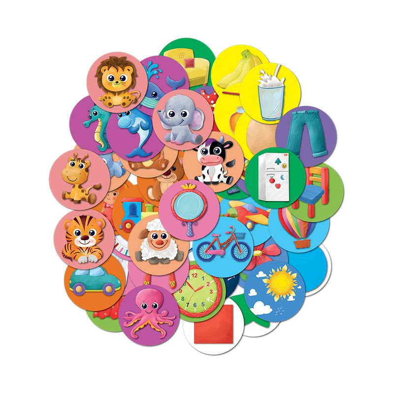 Setimiz de Vahşi Hayvanlar, Deniz Hayvanları, Evcil Hayvanlar, Oyuncaklar, Benim Odam, Eşyalarım, Kıyafetler, Gıdalar, Taşıtlar, Doğamız, Ev Eşyaları, Renkler & Şekiller ana kartlarına ait 4 obje kartı vardır.
