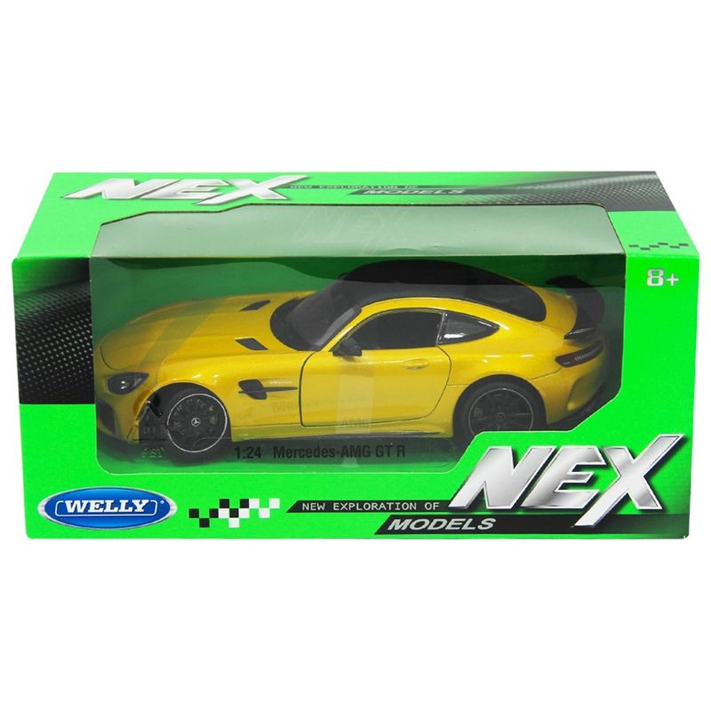 1:24 ölçekli Welly Mercedes-AMG GT R Model Araba metal gövdeden üretilmiştir. Açılabilen kapılar, kaput ve direksiyon ile sağa sola dönebilen tekerlek özellikleri bulunmaktadır.