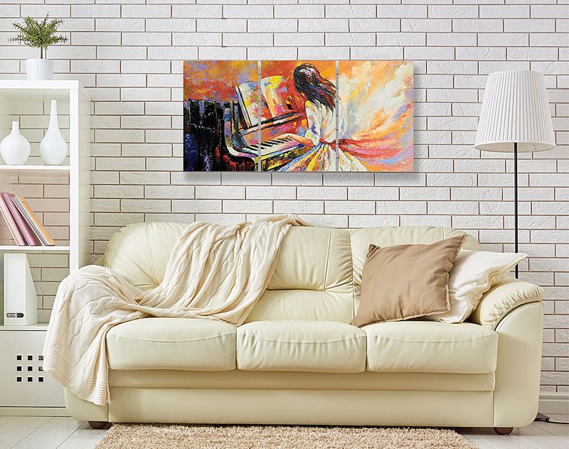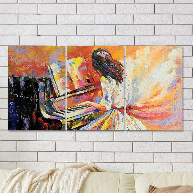 Full Frame 3 Parçalı Ahşap Poster - Hizalı Yerleşim - Piyanist (FF-HY011)