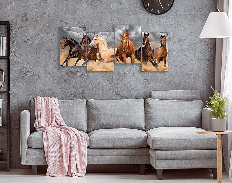 Full Frame 4 Parçalı Ahşap Poster - Basamaklı Yerleşim - Çöl Atları (FF-BY062)