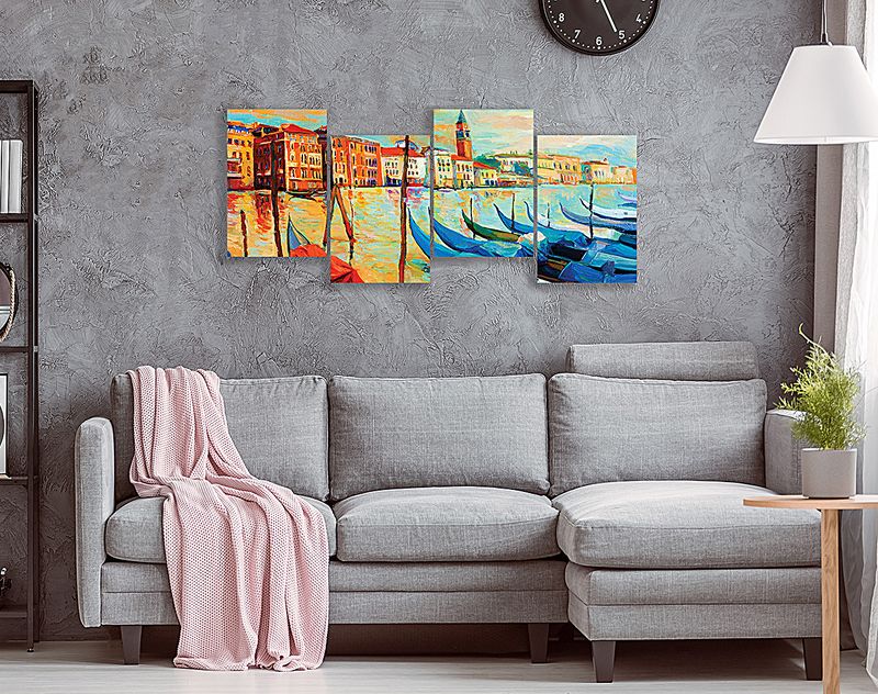 Full Frame 4 Parçalı Ahşap Poster - Basamaklı Yerleşim - Venedik İtalya (FF-BY070)