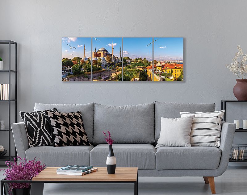 Full Frame 4 Parçalı Ahşap Poster - Hizalı Yerleşim - Ayasofya (FF-HY057)