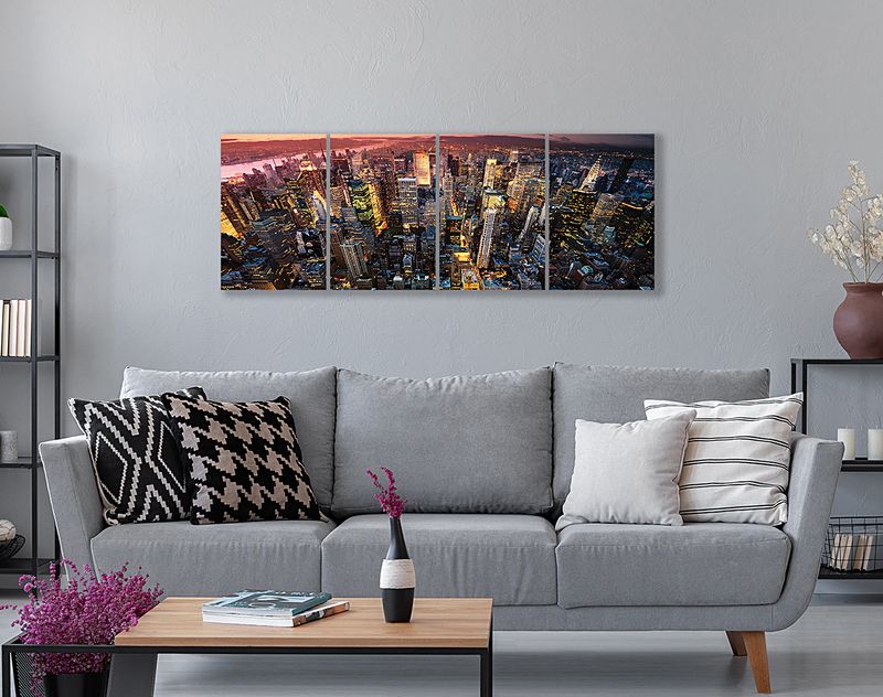 Full Frame 4 Parçalı Ahşap Poster - Hizalı Yerleşim - Manhathan New York (FF-HY067)