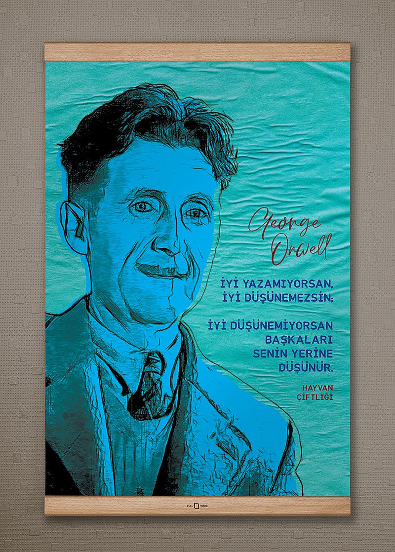 Full Frame Kanvas Poster - Hayvan Çiftliği Yazmak ve Düşünmek - George Orwell (FFK-007)