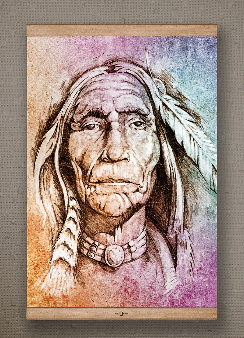 Full Frame Kanvas Poster - Yaşlı Kızılderili - KAYIN (FFK-PT01)
