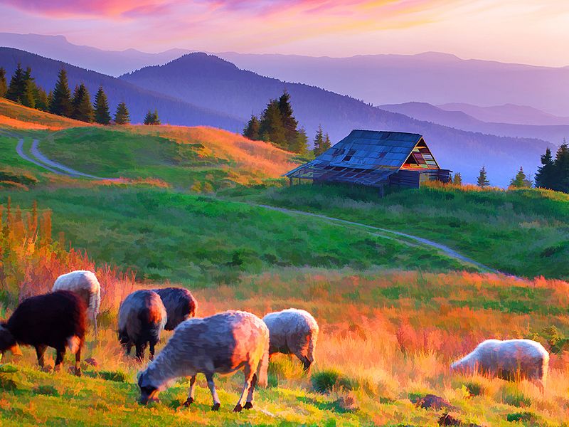 Günbatımı ve Koyunlar Ahşap Puzzle 204 Parça (HV06-CC)