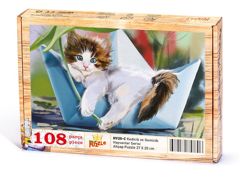 Kedicik ve Gemicik Ahşap Puzzle 108 Parça (HV20-C)