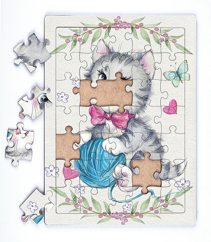 Minik Tekir ve Yumak Ahşap Puzzle 35 Parça (XXXV-17)