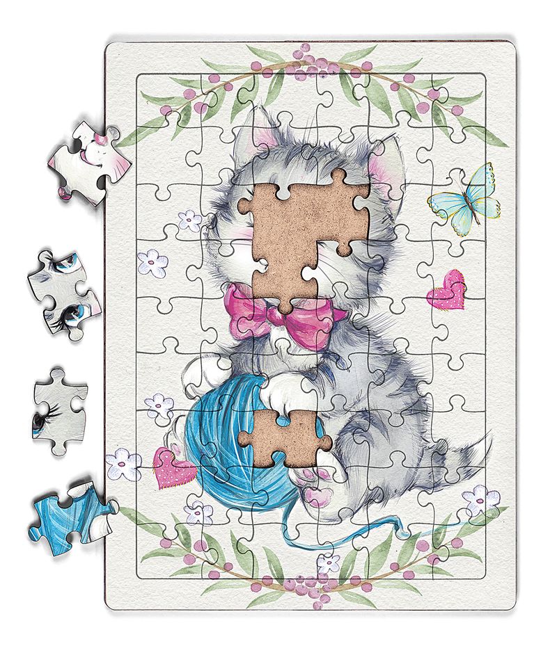 Minik Tekir ve Yumak Ahşap Puzzle 54 Parça (LIV-17)