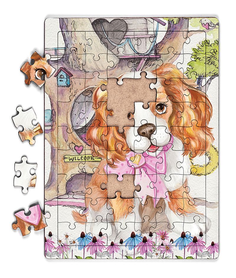 Sevimli Köpek ve Ağaç Ev Ahşap Puzzle 54 Parça (LIV-22)