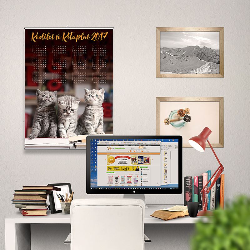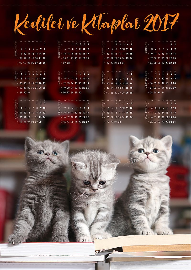2017 Takvimli Poster - Kediler ve Kitaplar - Sevimli