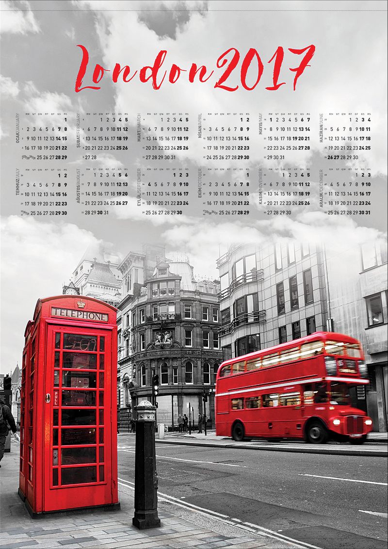 2017 Takvimli Poster - Şehirler - London - Sokak