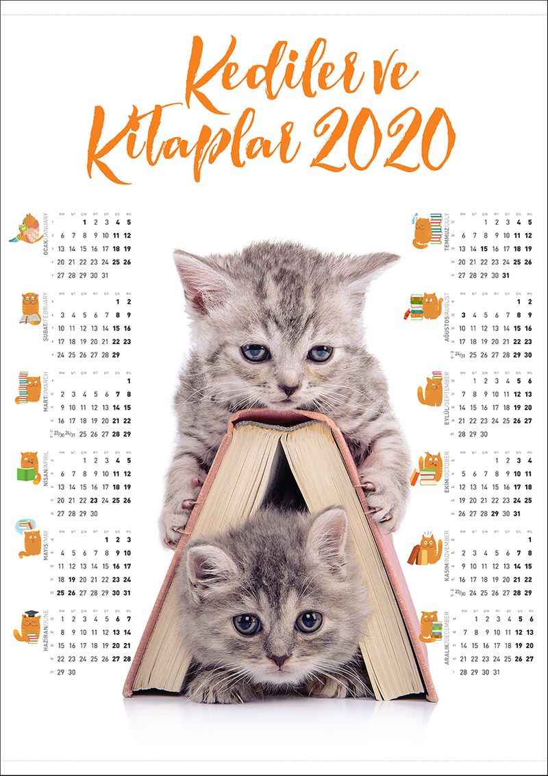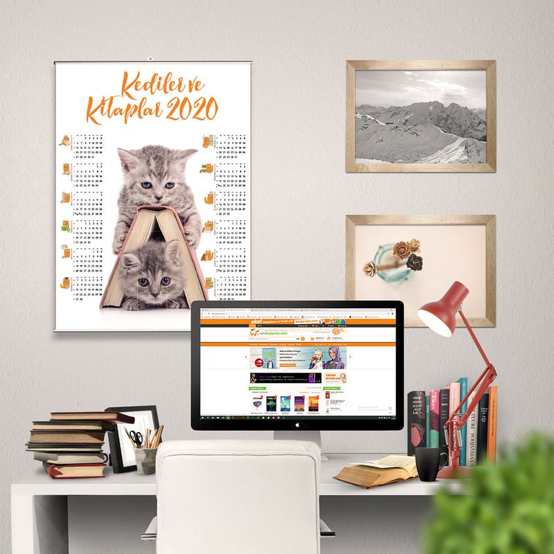2020 Takvimli Poster - Kediler ve Kitaplar - Kitap Ev