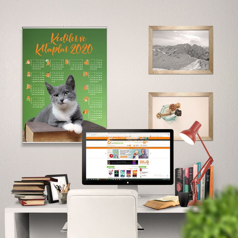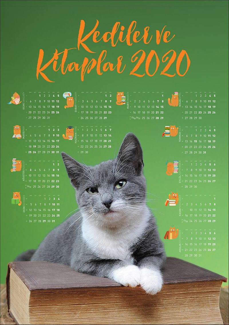 2020 Takvimli Poster - Kediler ve Kitaplar - Yeşil
