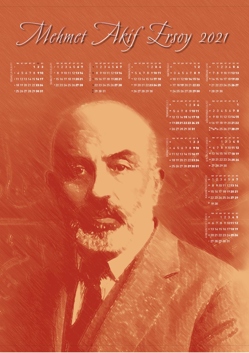 2021 Takvimli Poster - Yazarlar - Mehmet Akif Ersoy