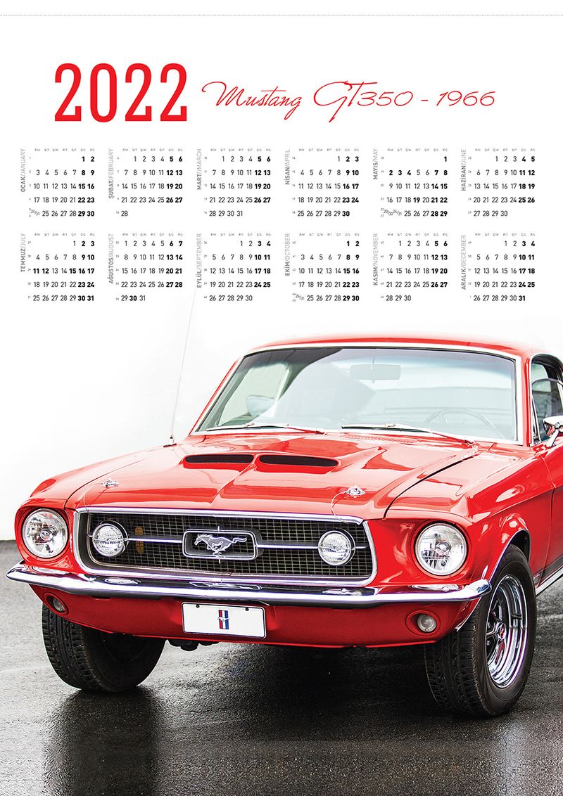 2022 Takvimli Poster - Arabalar - Mustang