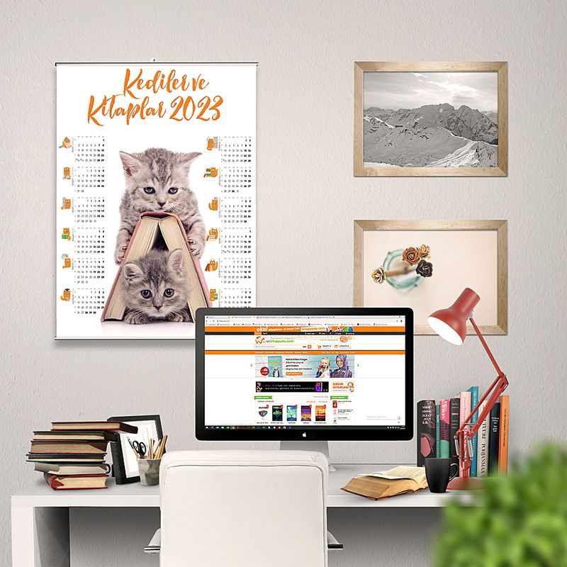 2023 Takvimli Poster - Kediler ve Kitaplar - Kitap Ev