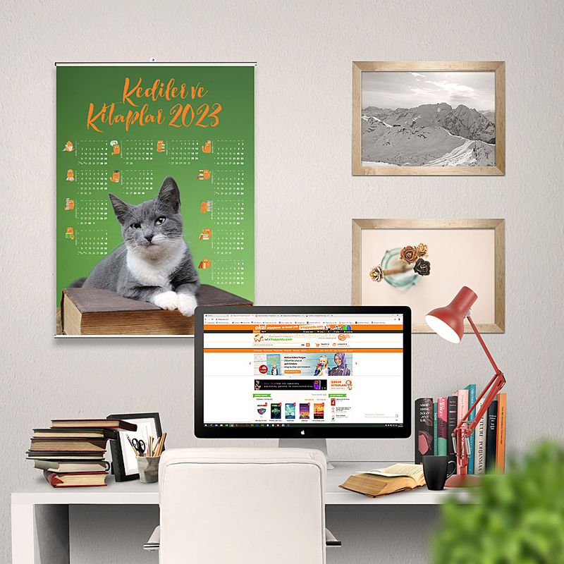 2023 Takvimli Poster - Kediler ve Kitaplar - Yeşil