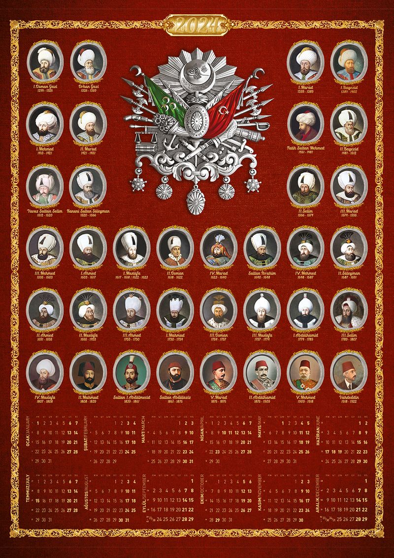 2024 Takvimli Poster - Osmanlı Padişahları