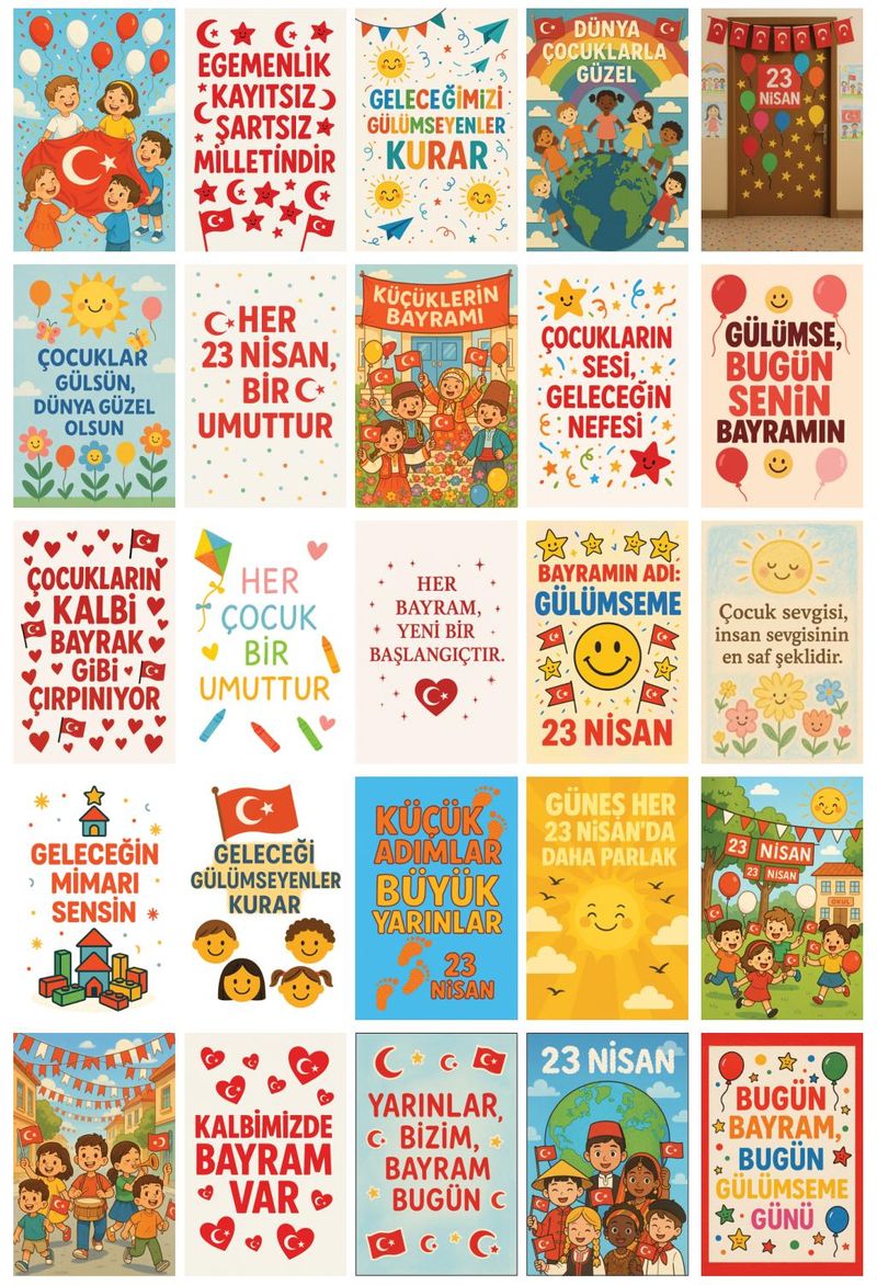 23 Nisan Temalı 54 Adet Duvar Poster Seti Oda Dekoru