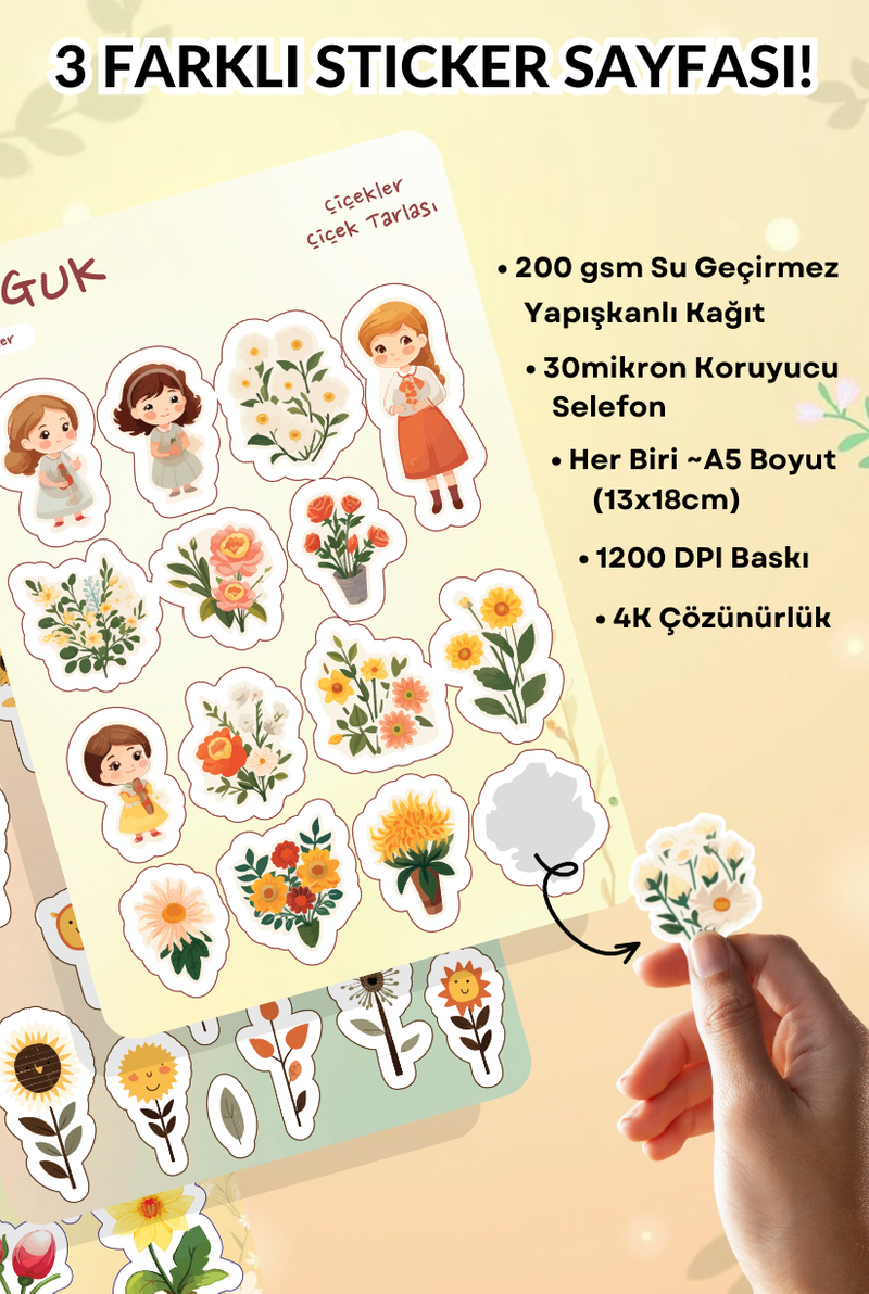 • Her Biri ~A5 Boyutunda (13x18cm) 3 Farklı Sticker Yaprağı
