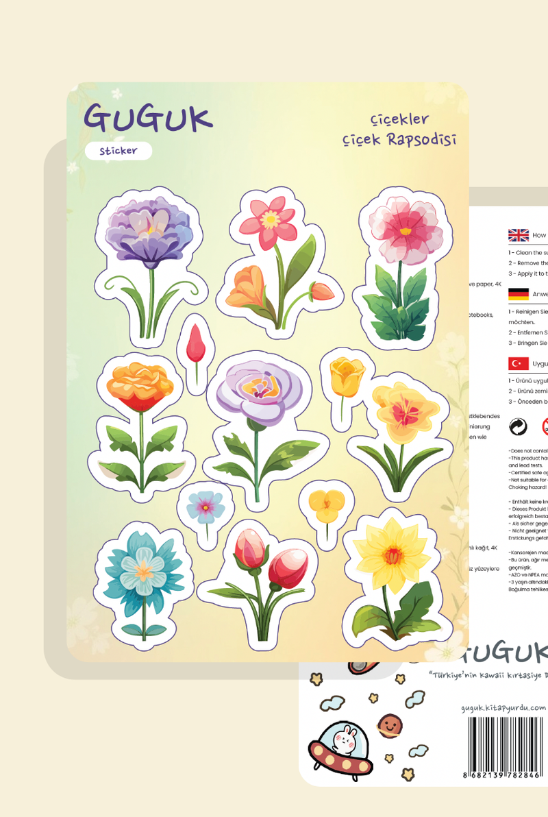 Her sticker, bir ifade, bir yaratıcılık ürünü. GUGUK Stickerları, bu ifadeyi dayanıklı yapısı ve canlı renkleriyle tamamlar. Ortalama bir kitap sayfasından yaklaşık üç kat daha kalın olan kağıt malzemesi tok bir dokunuş sunar. 1200 DPI yüksek çözünürlüklü baskı kalitesiyle tasarımlarınızı en ince detayına kadar kusursuz yansıtırken; selefon kaplaması sayesinde, renklerin canlılığı aylar geçse de ilk günkü gibi korunur! GUGUK Stickerları, sticker dünyasında kaliteyi deneyimlemeniz için hazırlandı.