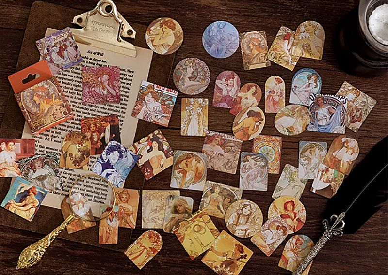 Alphonse Mucha Temalı 45 Adet Sticker Seti • Bullet Journal