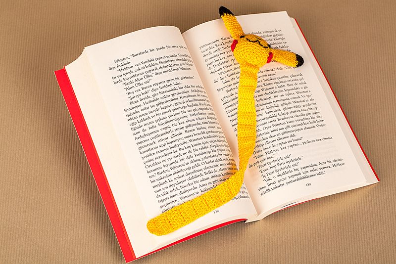 Zevkle okuyacağınız kitaplarınızın arkadaşı olmaya aday pikaçu, doğal malzeme kullanılarak el işi göz nuru ile örüldü.