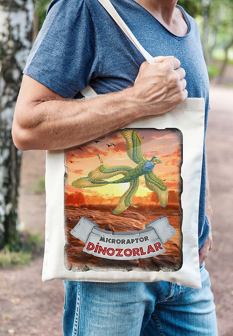 Askılı Bez Çanta - Dinozorlar - Mıcroraptor