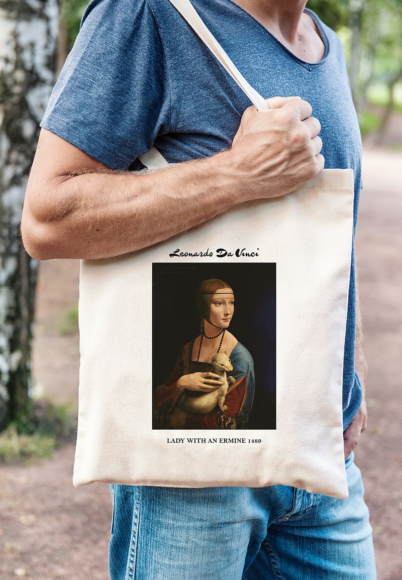 Askılı Bez Çanta - Ressamlar - Leonardo Da Vinci - Lady With An Ermine 1489