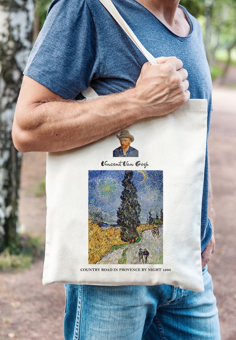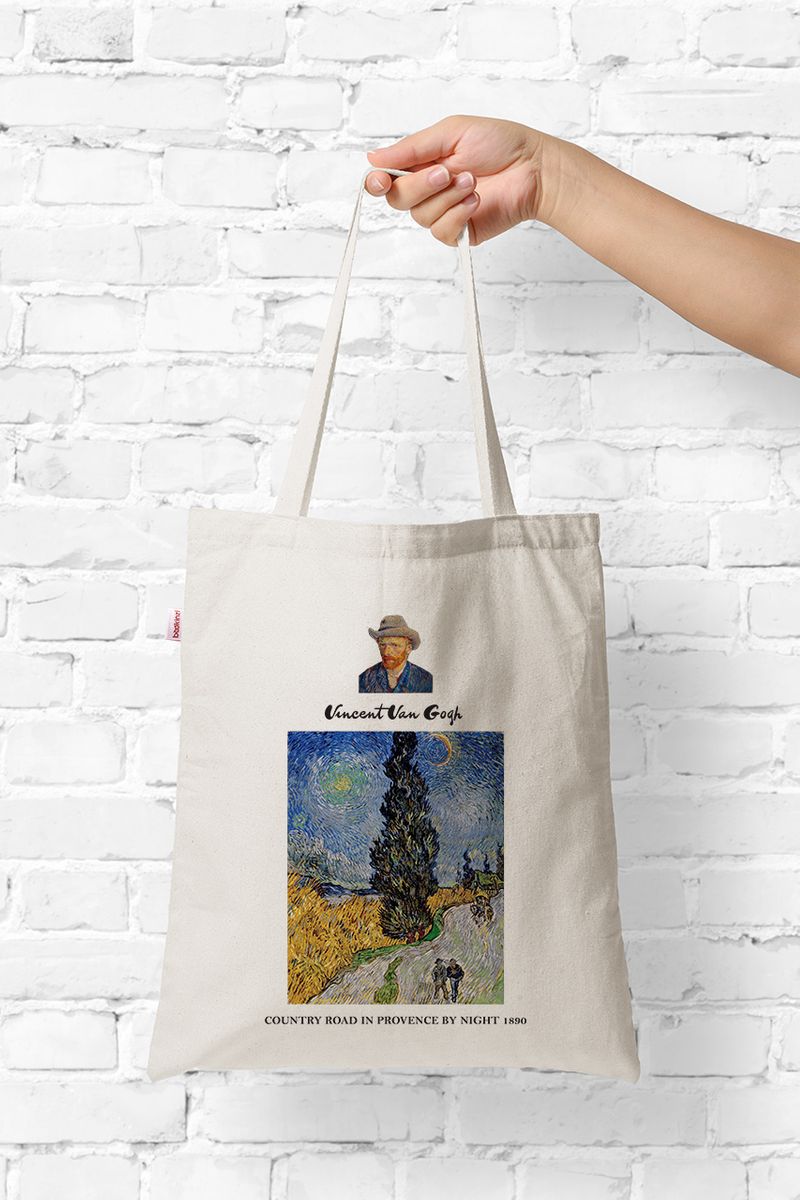 Askılı Bez Çanta - Ressamlar - Van Gogh - Country Road In Provence By Night 1890