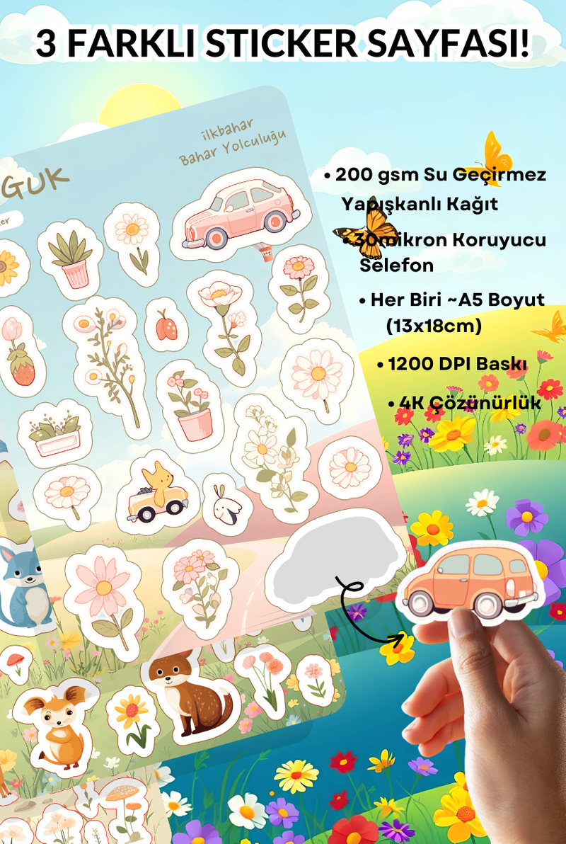 • Her Biri ~A5 Boyutunda (13x18cm) 3 Farklı Sticker Yaprağı