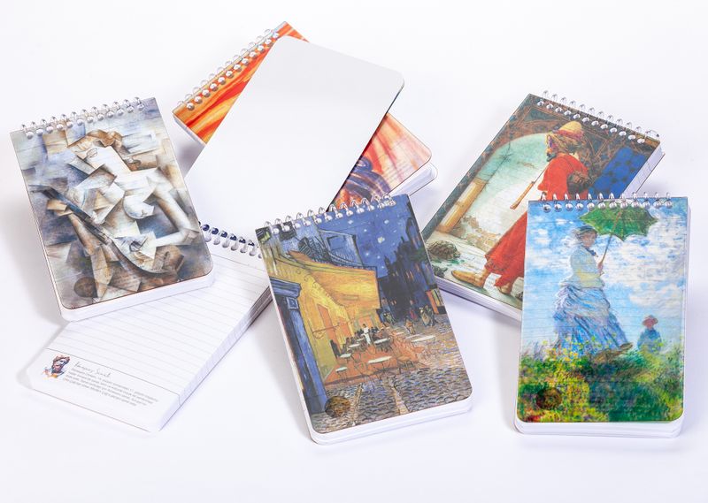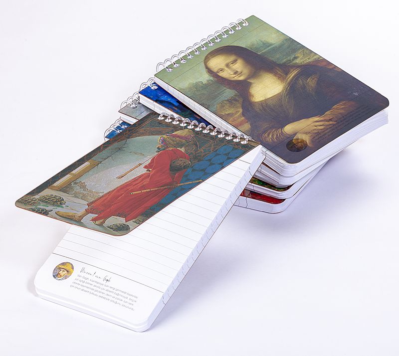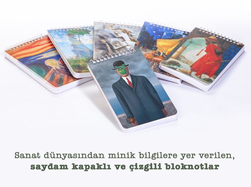 * Sanat dünyasından minik bilgilere yer verilen, saydam kapaklı ve çizgili bloknot