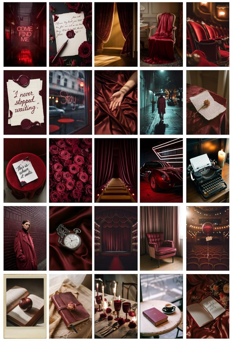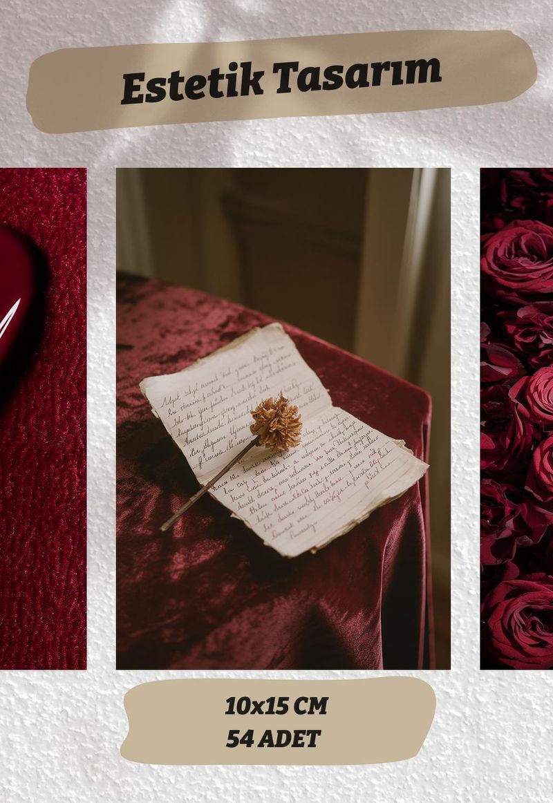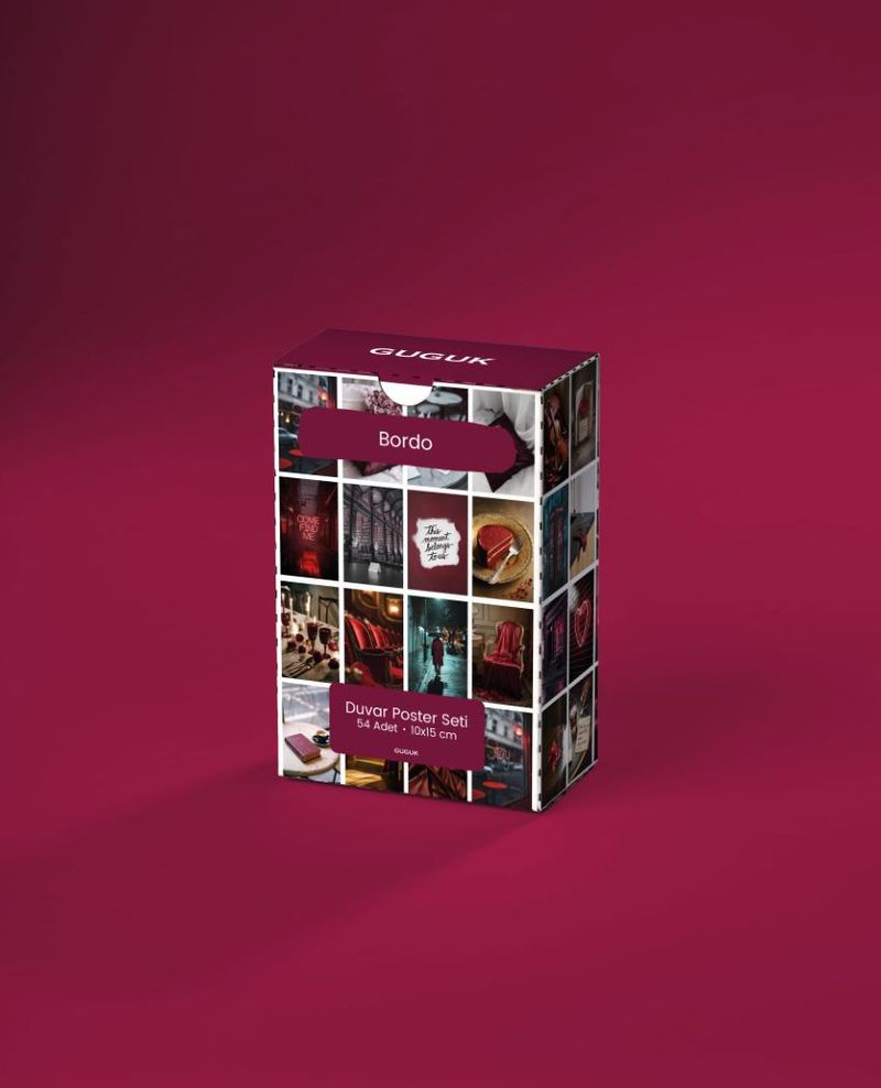 Bordo Temalı 54 Adet Duvar Poster Seti Oda Dekoru